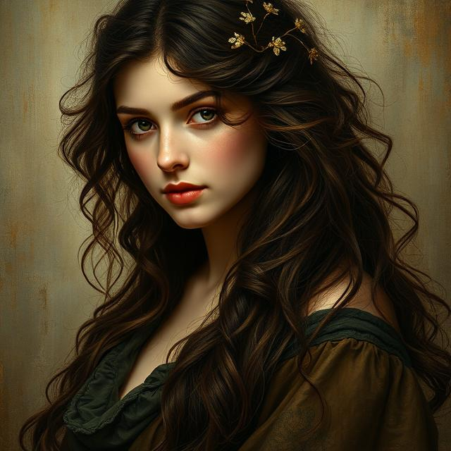 #portrait #beauty #digitalart #drama #fanart #photography #fantasyart #digitalpainting #fantasycharacter #forest #ai #brunette #dantegabrielrossetti #painting #preraphaelite #romantic #victorian #aiart