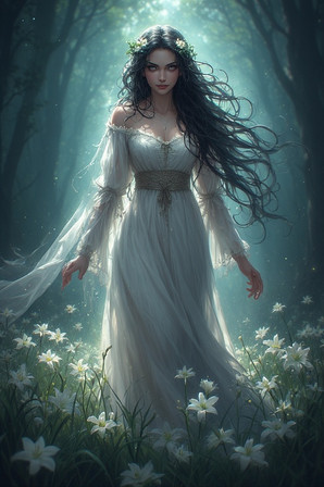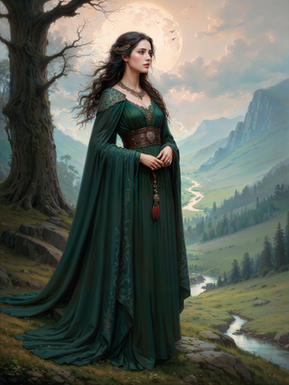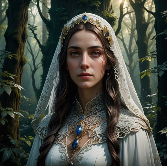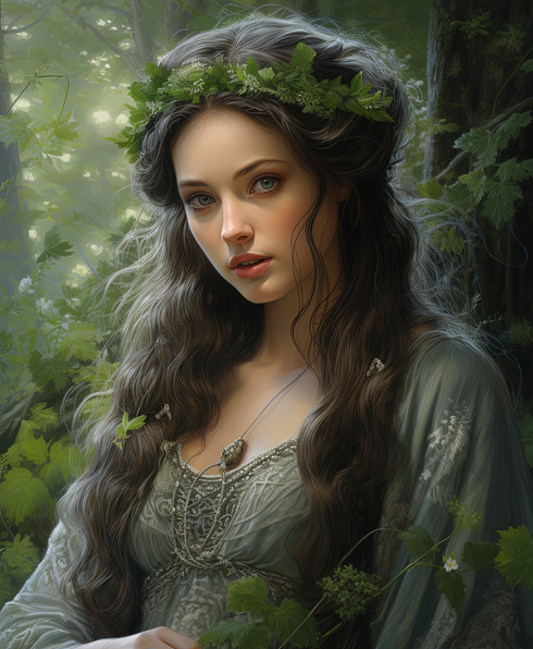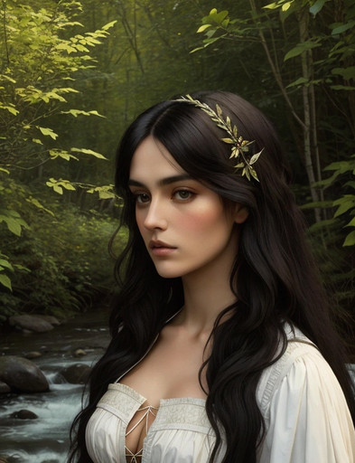 #digitalart #drama #forest #fanart #portrait #beauty #fantasyart #digitalpainting #ai #brunette #dantegabrielrossetti #dress #preraphaelite #romantic #victorian #aiart
