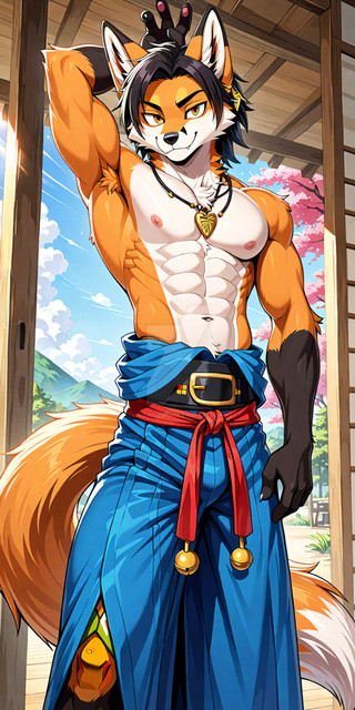 #furrymale #fox #digitalart #adoptable #kimono #furry #anthro #blossoms #cherryblossomtree #male #underwear #digital_art #cherryblssoms #ai_artwork #ai_adoptable