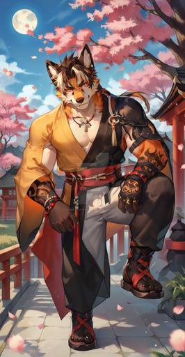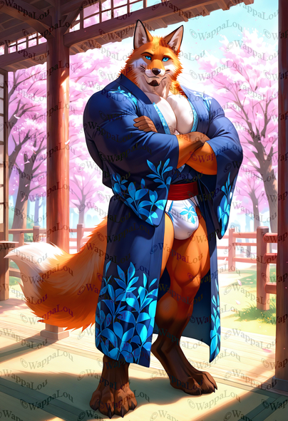 #furrymale #fox #digitalart #adoptable #kimono #furry #anthro #blossoms #cherryblossomtree #male #underwear #digital_art #cherryblssoms #ai_artwork #ai_adoptable