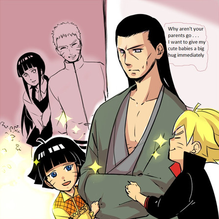 Yeah, right. That's why he wanted to go with Sasuke, leaving his "family" behind. That's why when Boruto bring him a bento, all he can think of is Team 7. From all we've seen, he spend his time yelling at Boruto (and I don't even remember the name of the girl, she's as irrelevant as Hinata...)