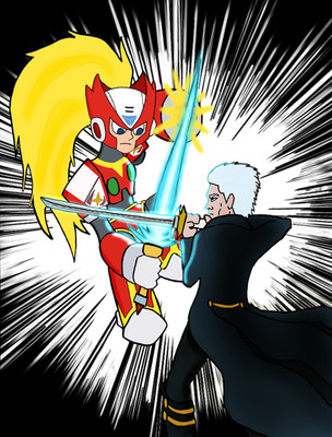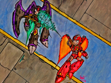 Here's a picture I did at work this week on break. Had time today to color it. Obviously it's the start of the final battle of Mega Man Zero 4.Related content