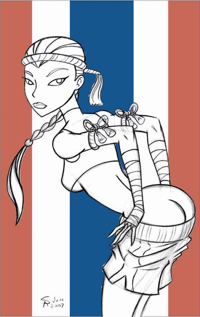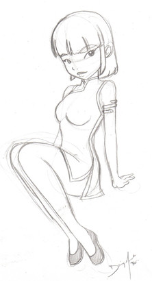I thought I needed another Asian so I drew her. My friend added a tattoo and changed the fan for the better. ( Check out the color version at )Related content