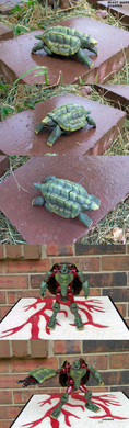 This the turtle van from the new ninja turtles show. The 1st column of pics is of the van before the paint job. I really wanted it to look like something they would find abandoned in the sewer. I imagined that Donatello would be fixing it constantly, it would always be breaking down at the worst moments but get going again at the last second.Related content