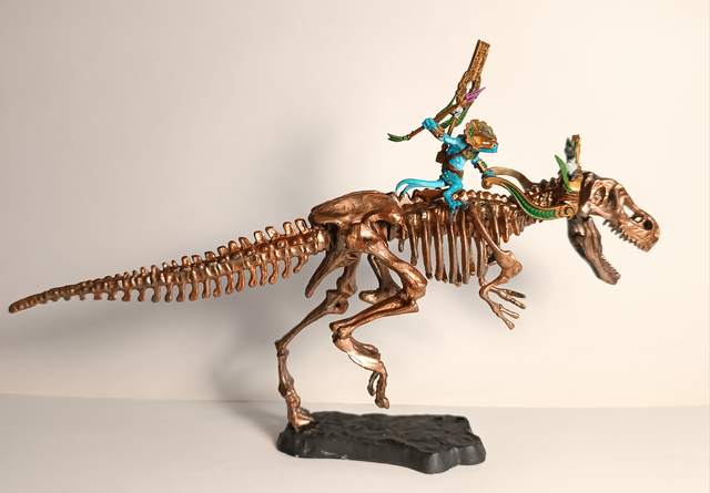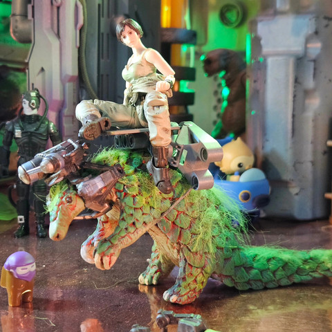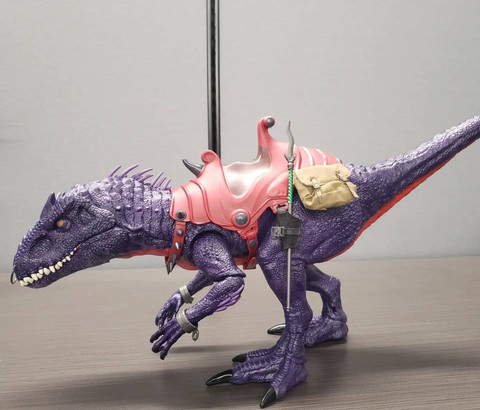 Custom Tyrantisaurus I made from a Jurassic park figure. She belongs to King Hsss daughter Nagi (who is also an original/custom). I didn't want to do all the cybernetic parts it, more of a barbaric look.Related content