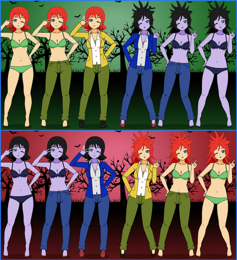 I've decided to draw three succubi. I really love how they look and how they act.Harpy is the one on the left, Rashy is the one in the middle, and Bandy is the one on the right.