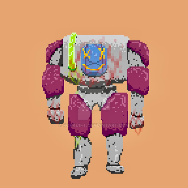 This character was inspired by many original and amazingly done artworks by `alness . This is some kind of experiment in pixel art for me. I have never done anything of this kind before. And I really hope that you all appreciate it.I think that I'm going to continue this experiment and make some more characters and machines in future. This kind of pixel art seems to be very interesting.