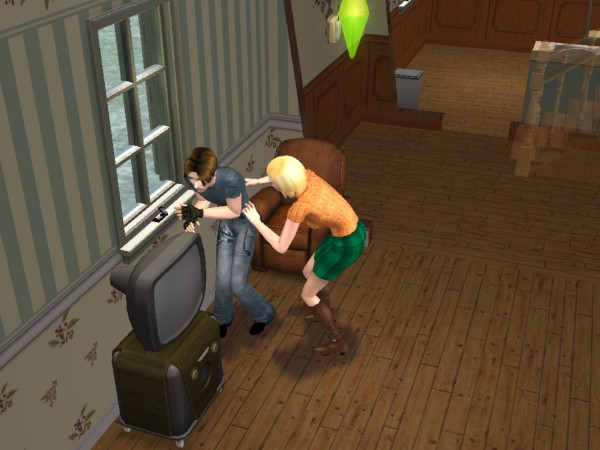 *tear* My new computer doesn't support the sims T_T I loved that game... so addicting.. how do you control them to do something like that though?