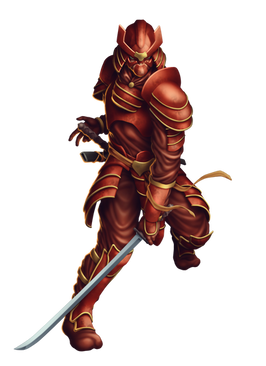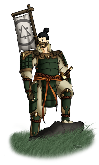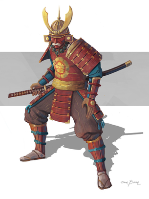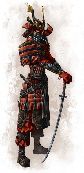 Excellent samurai, though I have to be honest and say that the sword he is holding doesn't do the rest of the piece justice at all. It looks like it's been thrown on there in a few minutes and doesn't look quite right. A katana is a curved sword for starters, while your blade looks straight and the proportions of the blade and the hand, handle and guard are rather off. I think the blade should be longer.