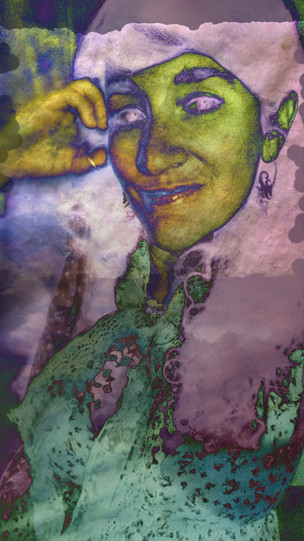 I think I did okay... There's no solid color patches, so that's good, and I kinda liked how the different colors all use the same "darkest tone"--the navy, steely blue color I used for the canvas background that you can't see... 'cause it's painted over, silly.