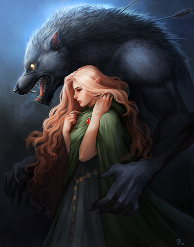 I love the werewolve's hands (paws ?) they seem so delicate on the woman, as if he was scared to hurt her^^
