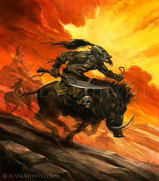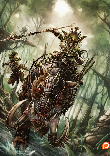 Warhammer fantasy inspired digital painting of goblin boar riders on the warpath!ΒRelated content