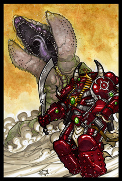 What can I say? Sometimes you just get asked to draw a two headed dinosaur with a cybernetic eye and drill on its right arm.This is the cover for the online Warhammer 40,000 magazine here: