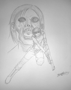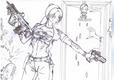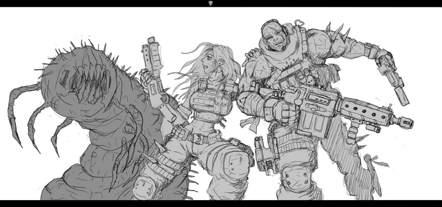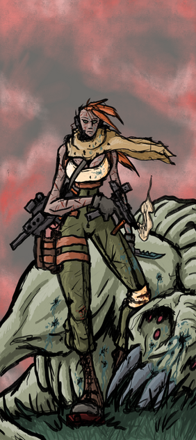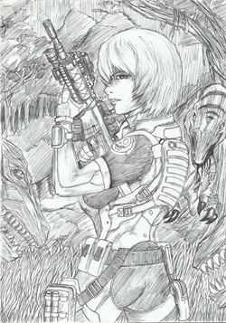 #alien #anime #comic #female #gun #manga #page #pistol #pose #survivor #war #woman #zombie #bitter #outfit #postapocalypse #postapocalyptic #sketch
