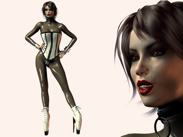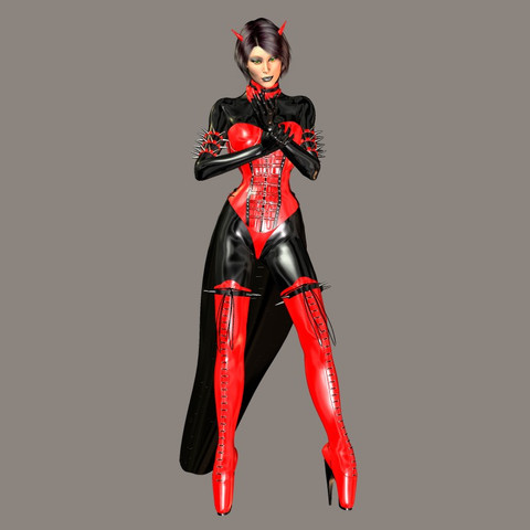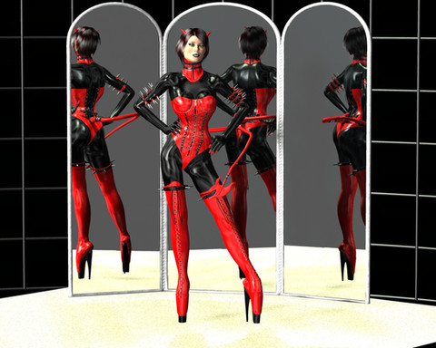 Our little fetish daemonette is checking out her reflection in the mirror, and likes what she sees. Do you?Figure is Daz3D's Victoria