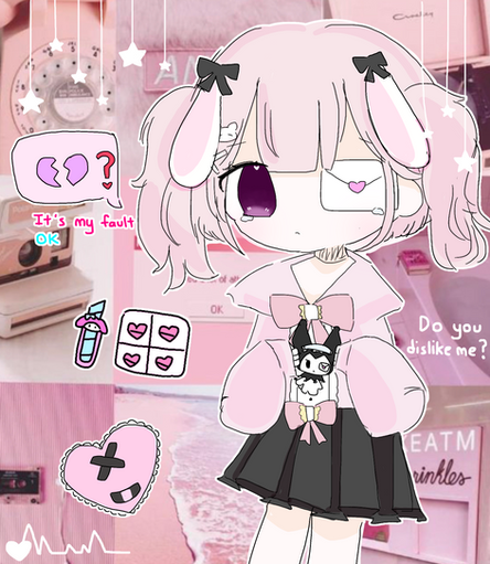#bunnyear #cute #cuteart #experimental #kawaii #pink #pinkhairgirl #sanrio #wings #kuromi #art