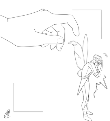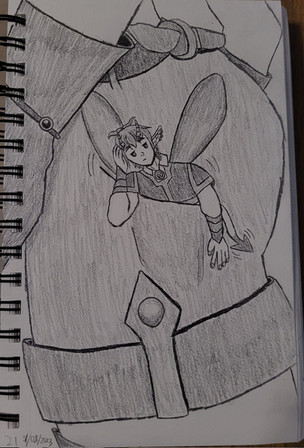 Look who's back. Back againA quick sketch of fairy Aura doing things again! This time he's being dangled by someone >w> Not sure who, but Aura seems to be having fun, regardless!