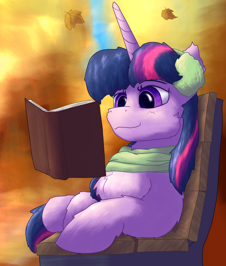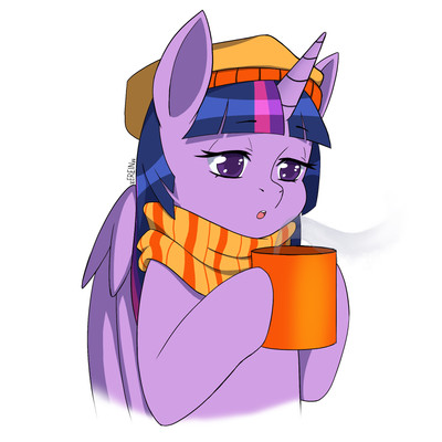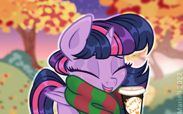 "I brought you something to warm up a bit! It's going to get colder soon!" You then noticed her levitating two cups of hot cocoa, one of which was carefully placed on your hoof. You took a sip and a warm feeling wrapped you. Your eyes moved from the cup to her. Her gentile smile hasn't changed at all since you met her years ago.