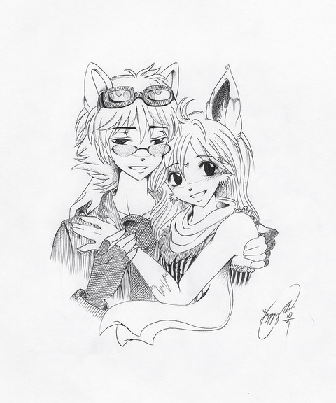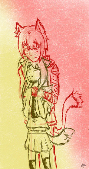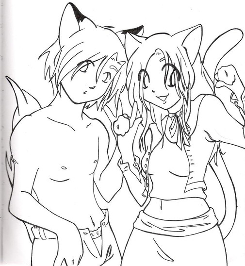 Te he me really like they're so cool together and me really like how they look human yet cat . . . mine never look like that u got a real talent, keep it up.
