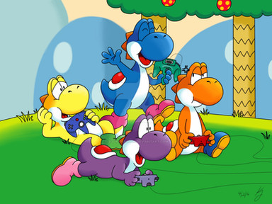 Nice and colorful! My favorite thing about this pic is the blue Yoshi; blue being my favorite color and all. Love the background too.