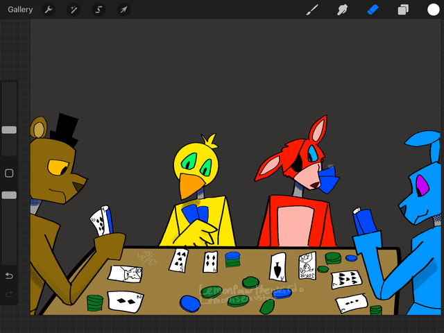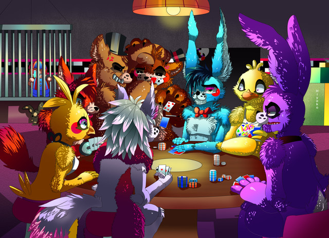 The gang decided to play cards, and now Foxy is taking FOREVER to take his turn.He must really want to win xD