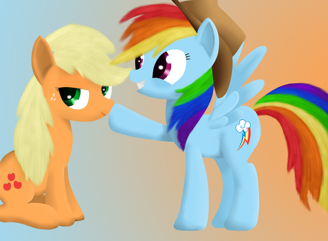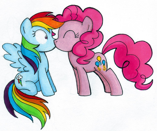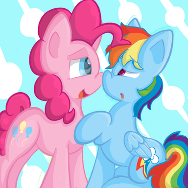 I am quite satisfied with what you have drawn, which has pros and cons. I only put a 4-star for originality for because the "Pinkie Pie popping out of the box and kissing Rainbow Dash" is quite original, the PinkieDash theme itself is a worldwide theme. My impact was a 4.5 star because the artwork surprised me by the way they were done. There was of course originality which led me to thinking this was a strong impact on me. But the last half was for because it wasn't as strong as I thought, with no background. The Technique is also a 4.5 because the manes were skillfully done, with the strands, you could almost see every living strand of hair on Rainbow Dash and Pinkie Pie's manes. And I could tell you didn't download or copy and pasted this from the Internet. I didn't give it a full 5-star rating for the manes don't fit well with the ponies themselves, with such detailed manes and such plain eyes and bodies. Also, I couldn't tell about Pinkie coming out of the box. There was no background which confused me, and it looked like a floating square in which Pinkie Pie was opening a zipper through time and space or some sort until you look in the corner which the corner has a whiter color than the background, which tells you it's a box. I thought the box color should be more colorful, but altogether I think this is a very astonishing piece of artwork.