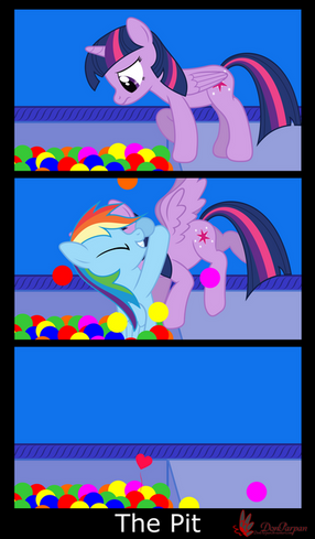 The way Twi looks at Dashie is like she's going to tie her up and do anything she wants with the pegasus. And Rainbow on the other hoof is like: "Do it your already, you egghead!".