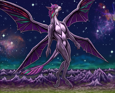 The Cyndraxx are a female dominated Dragon civilization sometimes called the Children of Avalar. Part of a proud Dragon race that migrated to the stars from their fractured & ravaged planet to find a new, less chaotic, peaceful world for themselves.The Cyndraxx embrace both Science & Magic in their culture and have achieved many wonderful things. Like the fearsome starship above which is controlled by mind alone through the amulet the pilot wears, and can warp through time. They also created a Android race called Drobots that are their sentries & knights, fighting evil across the Galaxy & Time itself.
