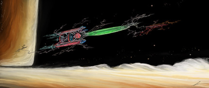 The Alorna has a full interstellar lab, and instruments able to closely probe distant planets millions of light years away while in orbit around her homeworld. But as Astrophysicist Ranloi would say "Where is the fun in that?". The observation dome on the third pylon doubles as a small short range self sufficient shuttle. And the Alorna's Interdimensional hull & Iso-shield can allow her to survive cruising the photosphere of a Sun.