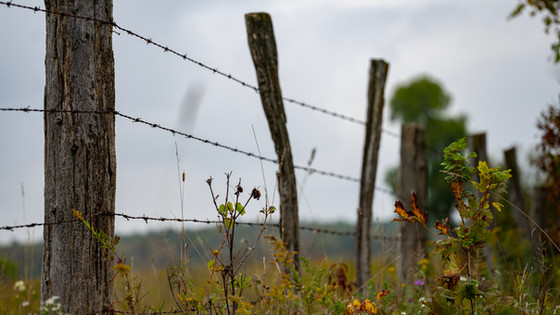 The change of the seasons. Β Soon winter will be upon us. Β (In the full version, water drops can be seen along the barbed wire).Related content