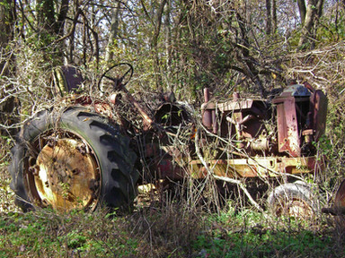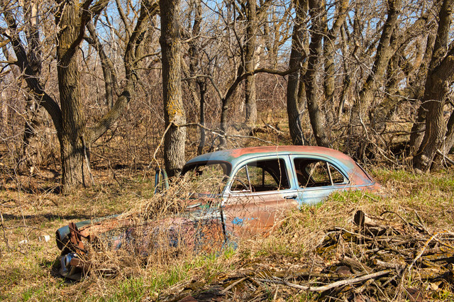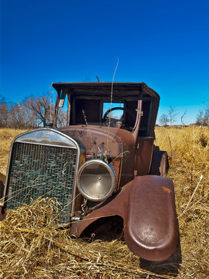 You have to love those wood spoked wheels--about all that's left of this old ride but still nice to see
