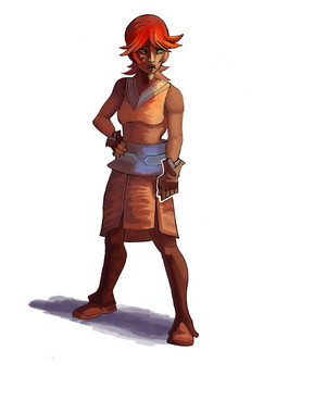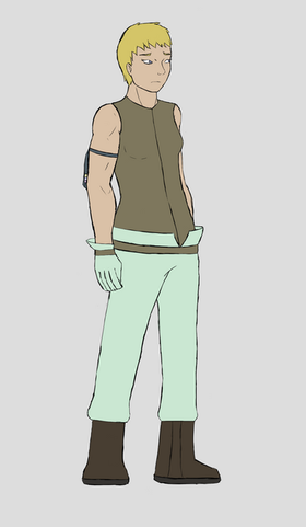 Love his expression. Kinda looks like Bugs Bunny to me, don't know why. The hand doesn't bother me too much. I just figured he went to put his hand on his waist and the belt was partly in the way, so his hand's half on the belt. His right forearm looks a little skinny, but I think he turned out cute.