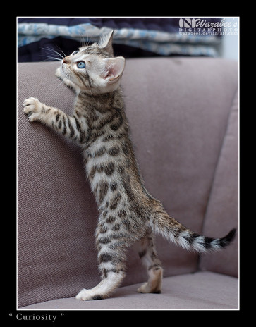 Another one from the visit to the (N)Jungle Heart's bengal cattery. Kittens are incredible when it comes to landing on their feet they were to fall. Their instinct is to always be feet down, and this kitten is no exception. After a split second she was able to turn around and get the world right side up again.Hope you like this one!