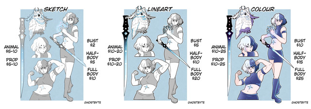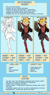 - In the event you have an idea but no reff sheet and this is a character creation commission, collect elements to reference in advance (example: items from a game or movie or show. Hairstyle of a media character or body type of a cartoon character, etc.)