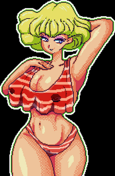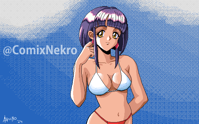 I'm always impressed when I look at old PC-98 games, and I wanted to try my hand at drawing 640x400x16 color again. I picked a nice simple scene with a 90s-esque original character. I can't really do the dithering right just yet, so it's solid colors for now.