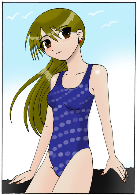 Very cute! I much prefer this type of swimsuit, over the barely there suits you often draw.