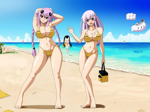 I do love how a one-piece swimsuit accents all the sexy curves of a gorgeous woman's physique, just like this original character does right here. Β Another stunning beauty on a backdrop of hot, summer beach!