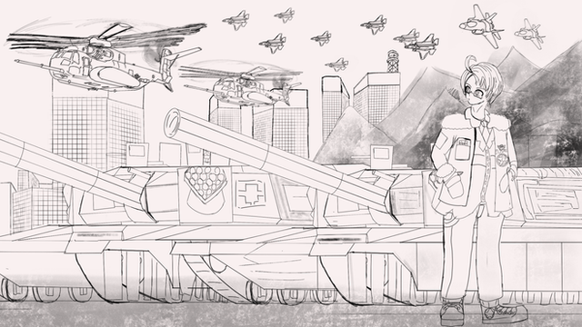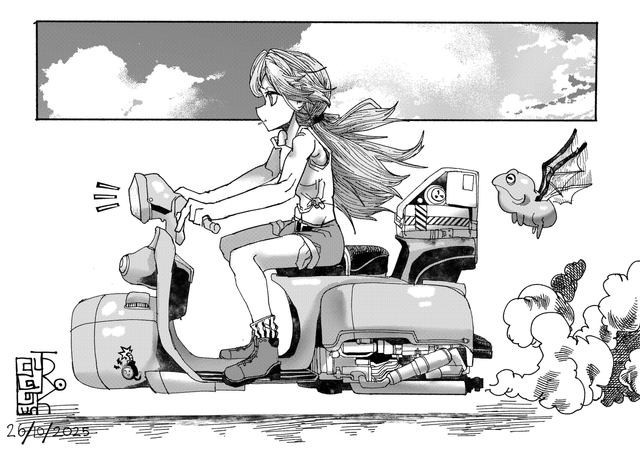 I found an unfinished sketch (just the girl's head and upper shoulders in profile view) that I decided to finish up. More perspective and mechanical practice, along with comic practice.Related content