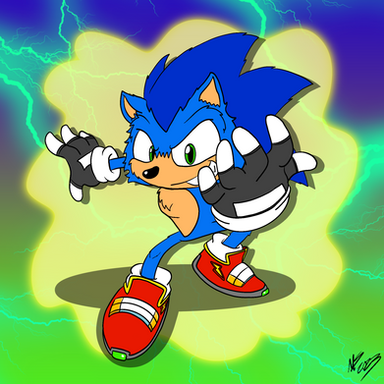 A fun drawing of my main Sonic OC, Tex, being a badass.Tex The Hedgehog ©