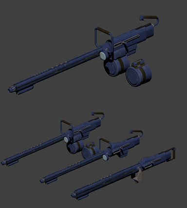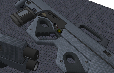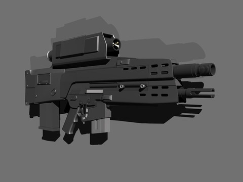 Compact rugged designed to operate in all environmental conditions with few issues. the M6 Assault rifle is a 5.56mm Fully automatic gas operated weapon housed in a rugged composite frame with an integrated 40mm breechloading grenade launcher. It has been introduced as the standard arm Of Valkiir's Elite Marines and serves with several semi independent enclave militias as their standard firearm. The weapon is designed to be used by both left and right handed shooters with an adjustable recoil absorbing shoulder stock that can be quickly compressed to reduce the length of the weapon while carried in vehicles or during airborne insertions.Notes: I did not intend to create a pulse rifle look alike when I sat down to tinker with a design I had cooking for a while., but it evolved into one. However this one is a conventional cased round firing weapon that is quite similar to modern assault rifles other than its distinctive look. I rather like the way the textures came out and the over all feel of the weapon. I'll just pretend I meant to do it.....