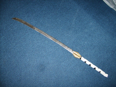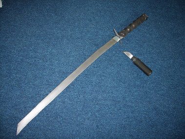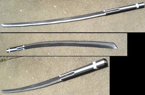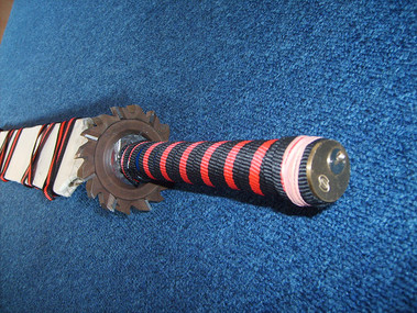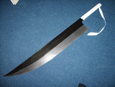 A sword made entirely out of trespa (found a long thick plate at work, couldn't yust leave it there)Trespa is a mix of wood and plastic an can be made razorsharp. (it is now)