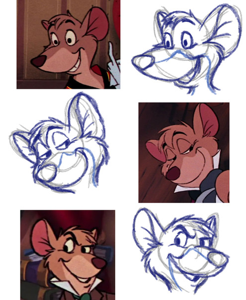 This is a quick study of Basil's head, from The Great Mouse Detective. It explains key values when drawing his head and what to look out for.I uploaded the fullsize so anyone who finds this useful can see the lines better!