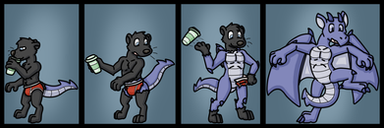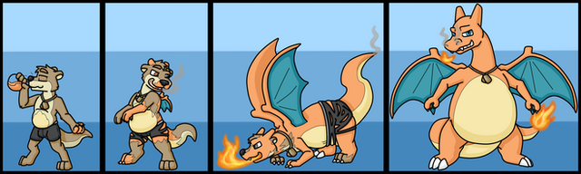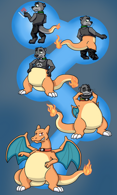 You really got this one down really well!(Except for the tail stripe not being red and the inclusion of the tail membranes, which was supposed to be excluded and I'll admit that I forgot to mention... Again... ) It reminds of a Lucario-to-Charizard tf that I've seen around here somewhere on DA. I really hope this one catches on out in mainstream.