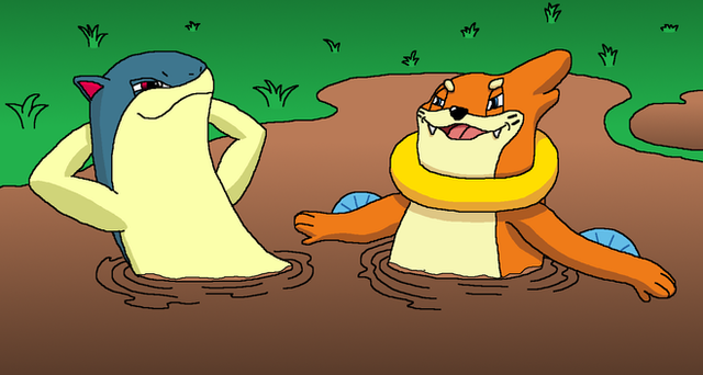 (looks behind trees and sees vander watching as the lucario sinks grinning evilly)