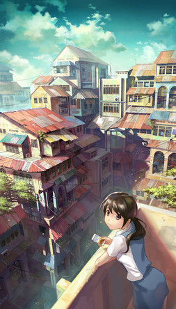 This is a gorgeous scene. The lights glow, making the urban scape soft and lulling. I really like her hair too.