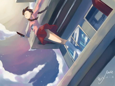 with the wallpaper and the sun ray, it looks more like she's flying.Β