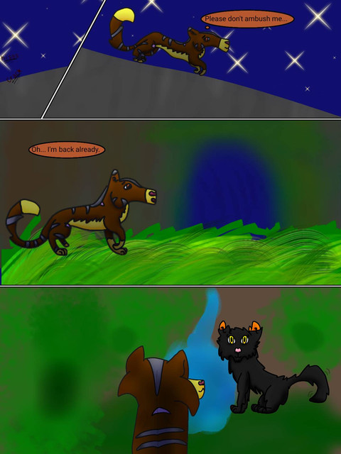 Here is the second page! FYI, there are going to be a couple differences in this story then from the canon stories. For example, there will be two deputies. Once the leader dies, or retires, the two deputies fight until one is incapacitated. The winner becomes the leader. Another example is; if a cat betrays the clan, they must flee immediately, because a traitor will not be exiled, but executed.But here they are! Redstride and Ivytail. The blue cat sleeping next to Reddie is his brother. Guess his name, you'll meet him soon.