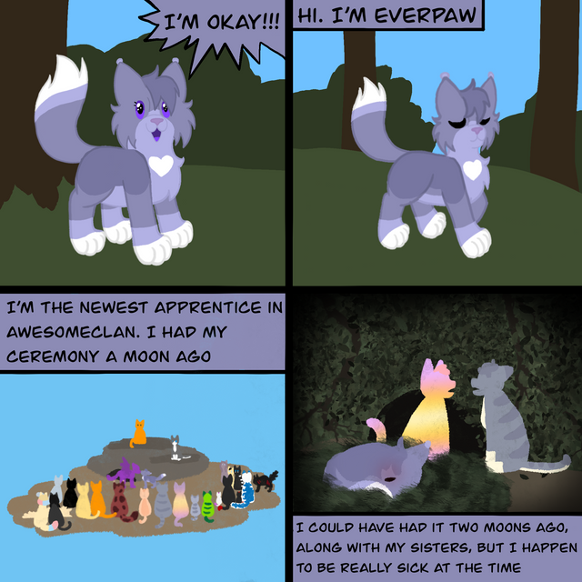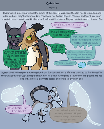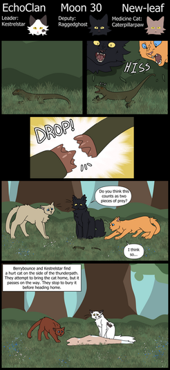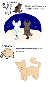 And here comes Chippedstar, the leader of Windclan, and Carvedpaw, his son, who is a replica of his mother.What's wrong with Chippedstar?