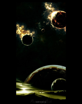 I think the idea is very nice, but I don't like the execution at all - the look is really 'computerised', I don't like a lot of the blending, it's not really a whole and all in all, it just doesn't look that professional to me. I don't like it, personally... I'd work some more on blending, more complex effects than radial blur and remove strange contrasts like the blue planet and the space, no lighting of the 'explosion' on the other planet, etc. The nebulae look a bit strange too, perhaps balance them a bit more, give them more smudge and softness like real clouds. That's all I can think of.