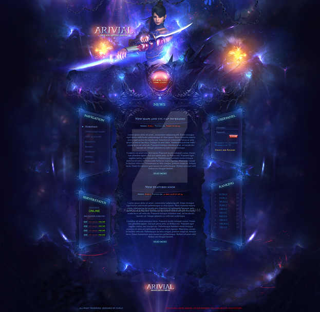 Web interface for Lineage 2 site. Size 80%.PSD for sale - www.gamesitetemplates.com/evok…